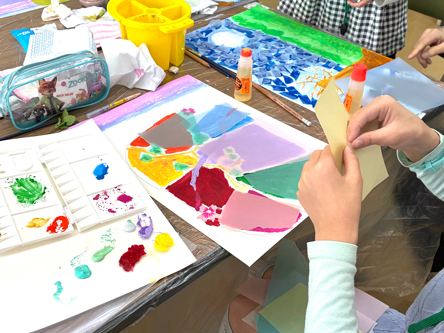 ある段階で色紙を貼りはじめると、みな一気に制作のスピード感を増していくのが興味深かったです。使い方もそれぞれの作品で異なっていて良かった。