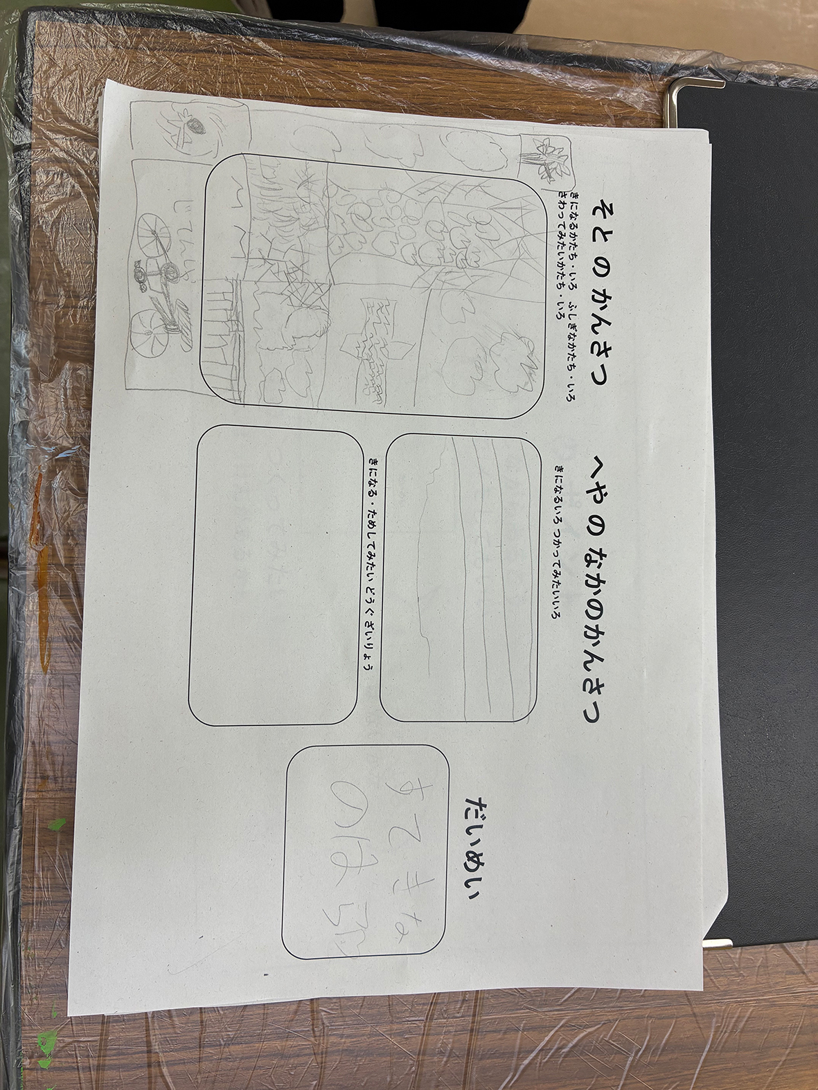WSではまず導入として、風景って何だろうという問いからスタート。目にうつるもの何でもそう、色んなものの組み合わせでできてる、変わる、などとお話してから、会場の建物付近を歩いて観察タイム。